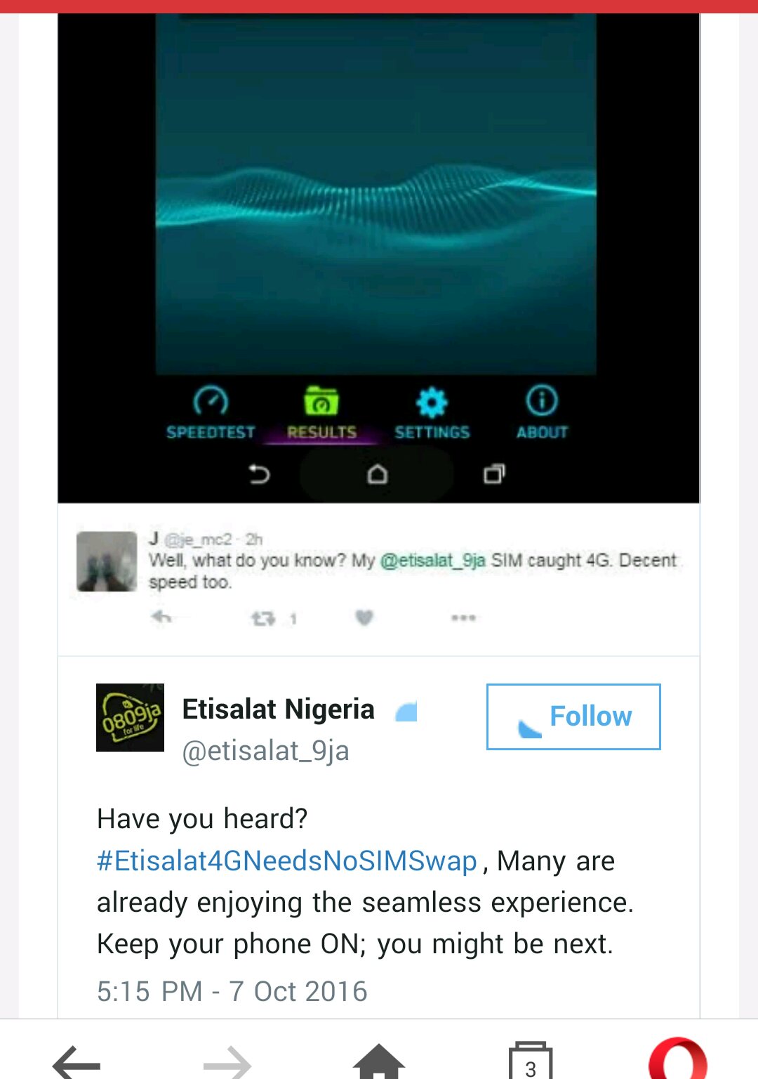 GLO . The Etisalat sims are automatically USIM(Universal Subscriber Identity Module) which doesn’t need sim upgrade before it will work on 4G. According to their twitter hashtag, #Etisalat4GNeedNoSimSwap.